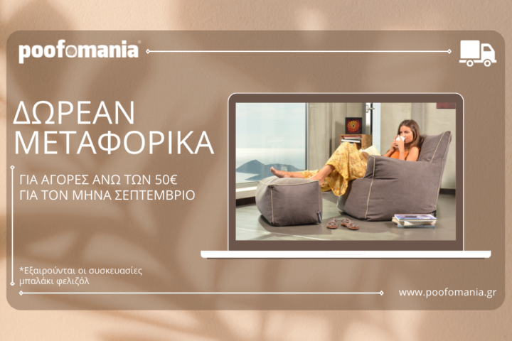 Δωρεάν Μεταφορικά για αγορές άνω των 50€ για τον μήνα Σεπτέμβριο! Εξαιρούνται οι συσκευασίες μπαλάκι φελιζόλ.