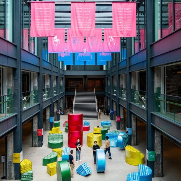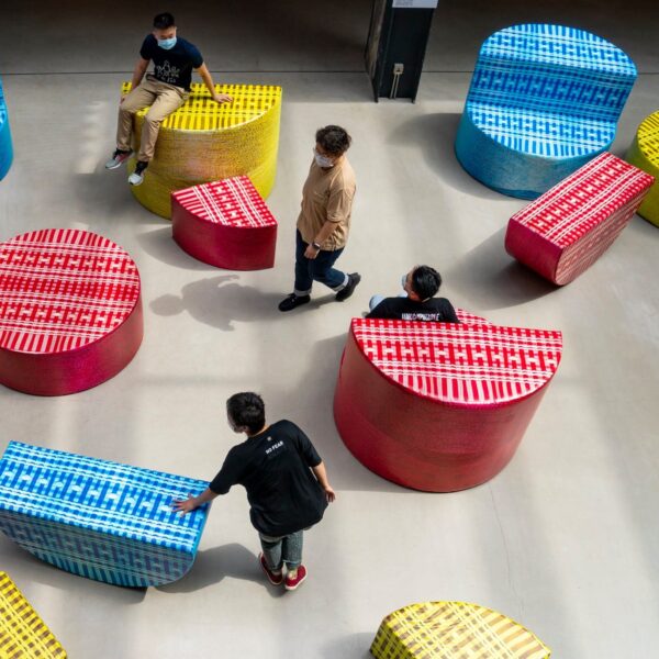 Το “The Bobbin Order (DEMOS CHAT)” του Ανδρέα Αγγελιδάκη, ένα σετ απαλών γλυπτών σε σχήμα μπομπίνας, φιλοξενείται στο CHAT, στο Χονγκ Κονγκ.
